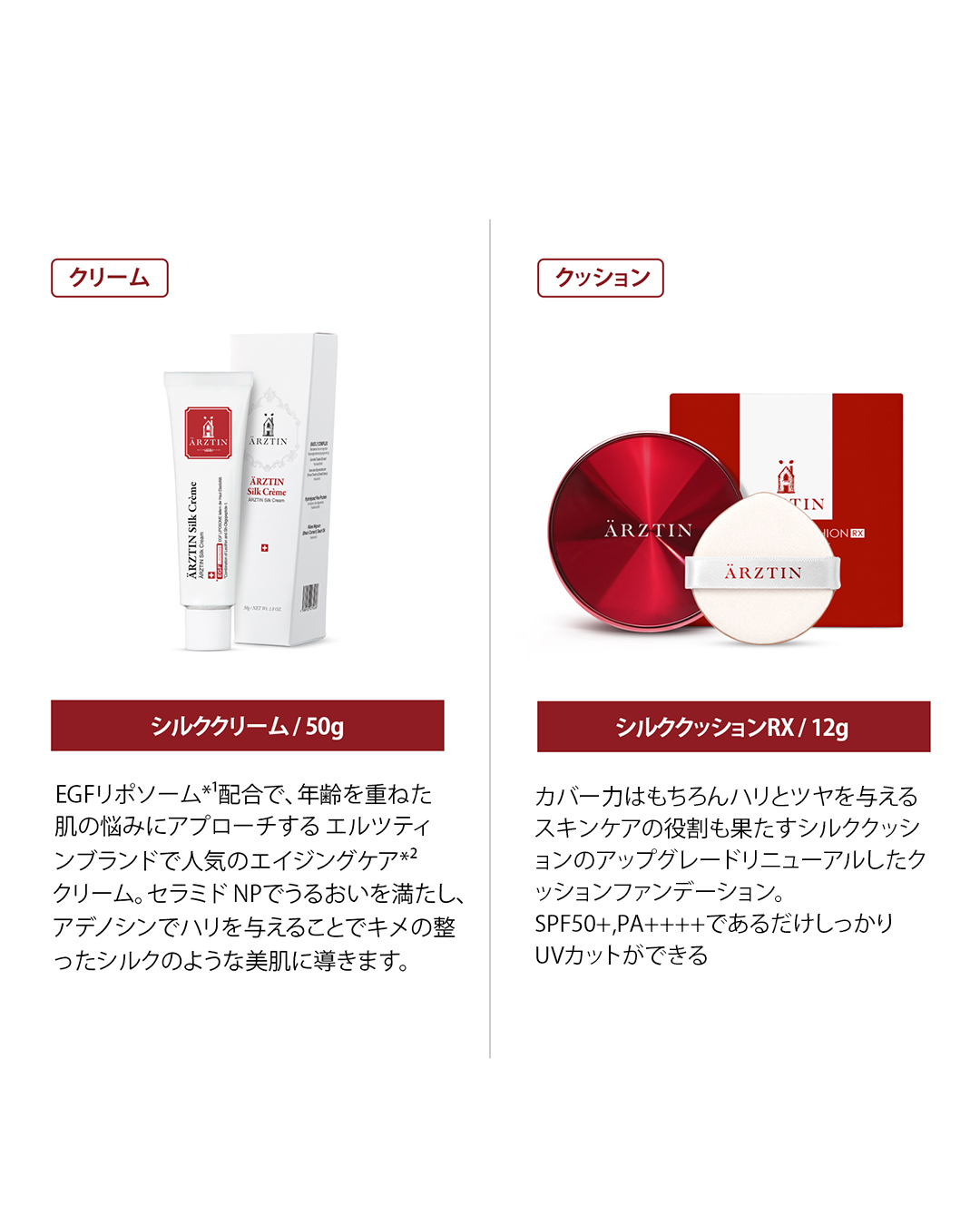 水、シクロペンタシロキサン、酸化チタン、メトキシケイヒ酸エチルヘキシル、アジピン酸ジブチル、安息香酸アルキル(C12-15)、酸化亜鉛、グリセリン、BG、セチルPEG/PPG-10/1ジメチコン、ジエチルアミノヒドロキシベンゾイル安息香酸ヘキシル、ナイアシンアミド、ラウリルPEG-9ポリジメチルシロキシエチルジメチコン、1,2-ヘキサンジオール、ジ安息香酸PG、酸化鉄、ジステアルジモニウムヘクトライト、合成フルオロフロゴパイト、オリーブ油脂肪酸ソルビタン、ビスエチルヘキシルオキシフェノールメトキシフェニルトリアジン、硫酸Mg、カプリル酸グリセリル、トリベヘニン、フナバラソウエキス、ジ酢酸ジペプチドジアミノブチロイルベンジルアミド、パルミトイルトリペプチド-5、パルミトイルトリペプチド-1、アセチルテトラペプチド-5、ツボクサエキス、アセチルオクタペプチド-3、トリペプチド-1銅、パルミトイルテトラペプチド-7、合成ヒト遺伝子組換オリゴペプチド-1、合成ヒト遺伝子組換ポリペプチド-1、合成ヒト遺伝子組換オリゴペプチド-2、アシアチン酸、マデカシン酸、マデカッソシド、アシアチコシド、カプリリルグリコール、アデノシン、ティーツリー葉エキス、アセチルテトラペプチド-3、ミツロウ、イソステアリン酸ソルビタン、水酸化Al、アセチルヘキサペプチド-8、乳酸、カルボマー、エチルヘキシルグリセリン、デキストラン、トリエトキシカプリリルシラン、EDTA-2Na、ポリソルベート20、パルミチン酸エチルヘキシル、アカツメクサ花エキス